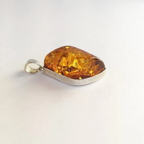このペンダントのアンバーは、バルト海沿岸で採れた天然のもので、サイズは31mm×21mm×11mm程です。