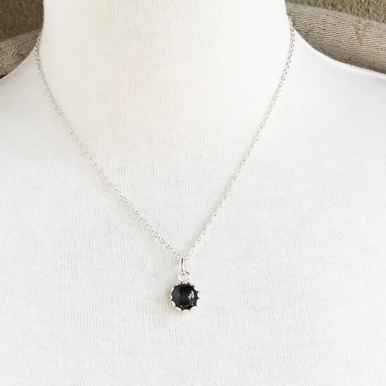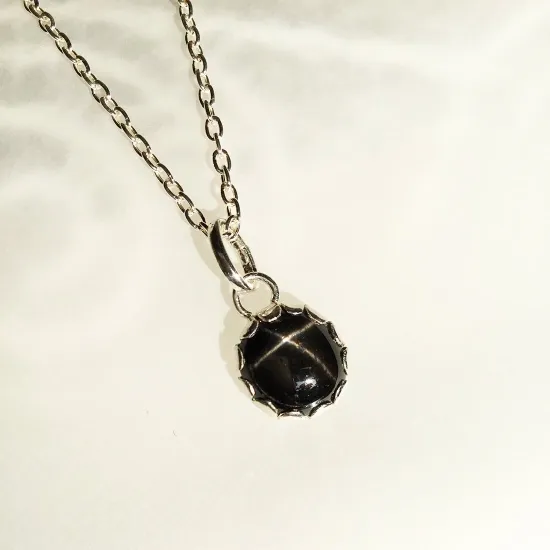 ブラックスターの石を純銀で包み込むように留めたハンドメイドのペンダントです。