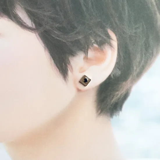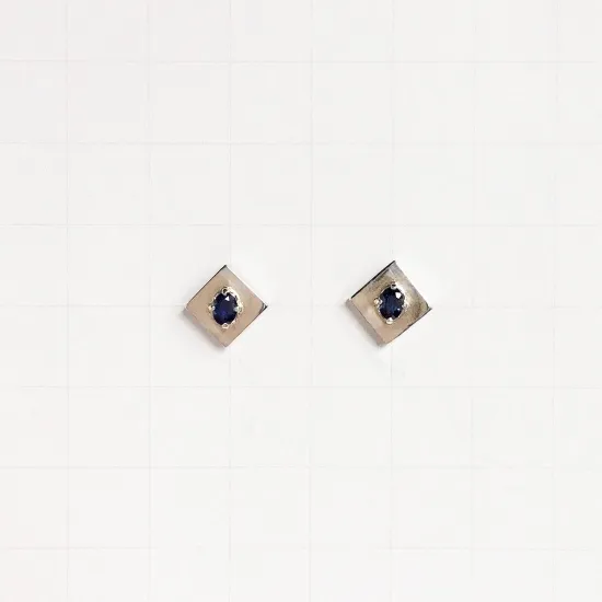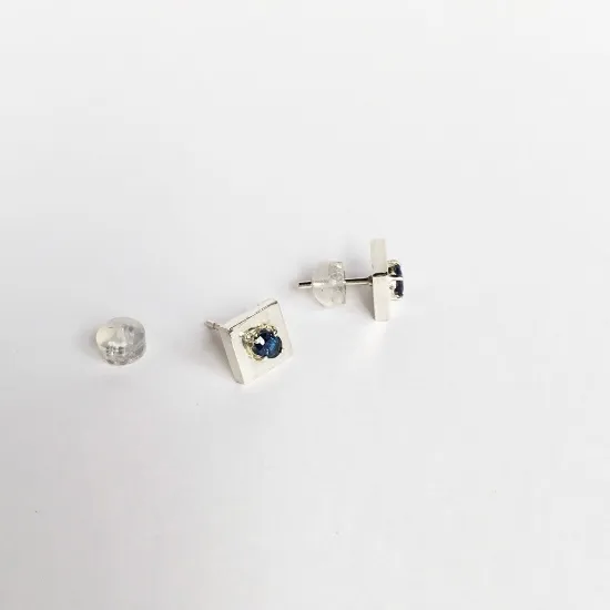 2mm程の厚みの銀の正方形の板の上にブルーサファイアをのせたハンドメイドのピアスです。