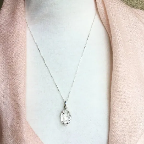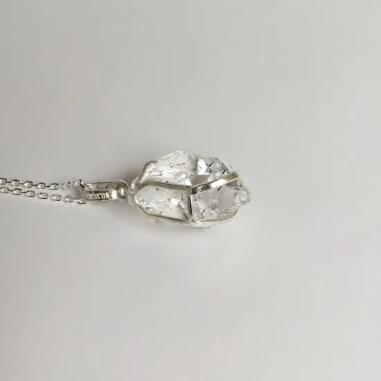 母岩から掘り出されたままの大粒のハーキマーダイヤモンドを、手摑みしたようなシルバーの枠を作って留めました。