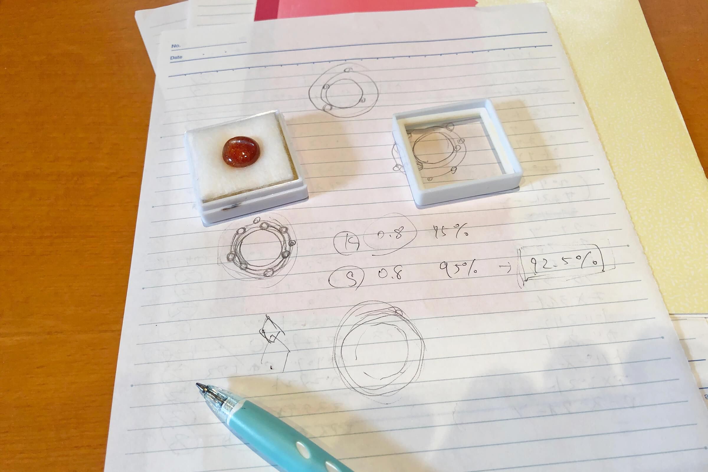 中には「この石でつくってほしい」とお手持ちの石をご持参になるお客様や、イメージに近いイラストや写真、実物などをお見せになるお客様もいらっしゃいます。